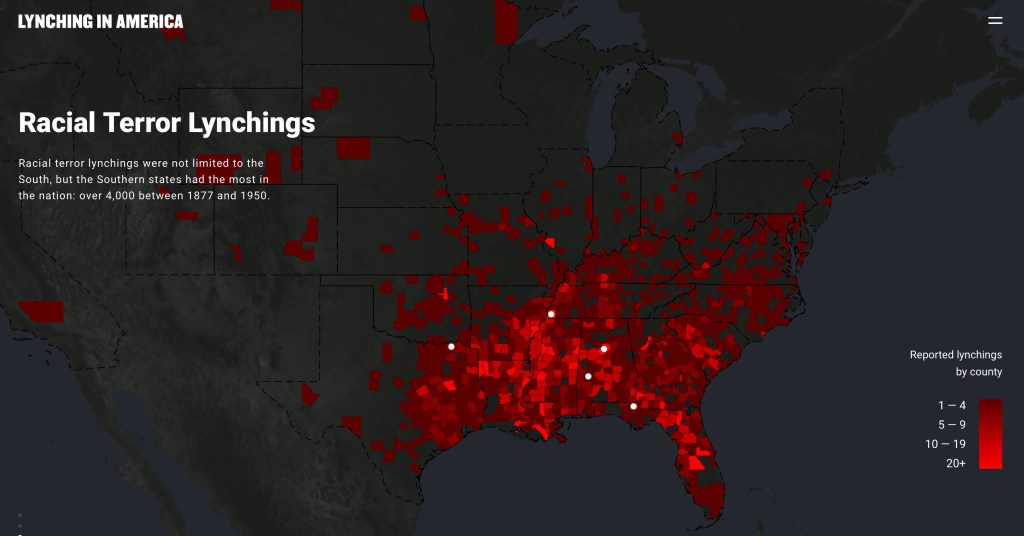 More than 4,400 African Americans were lynched across 20 states between the end of Reconstruction in 1877 and 1950.
