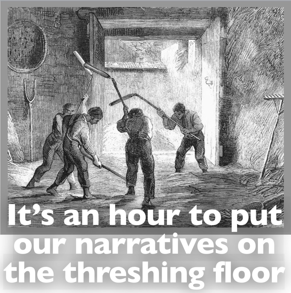 With all this on the table, it behooves us to relentlessly and thoroughly put our narratives on the threshing floor.