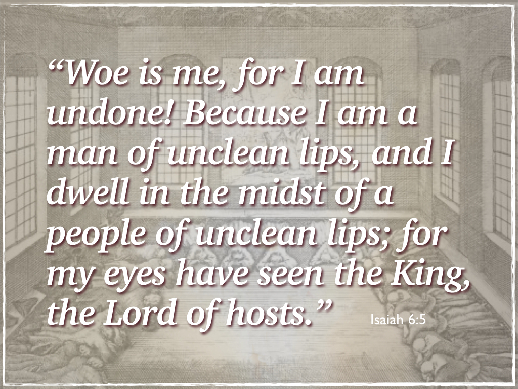 When the Lord revealed Himself to the prophet Isaiah this was his response: “Woe is me, for I am undone. I am a man of unclean lips and I live among a people of unclean lips; for my eyes have seen the Lord of Hosts.” (Isaiah 6:5)