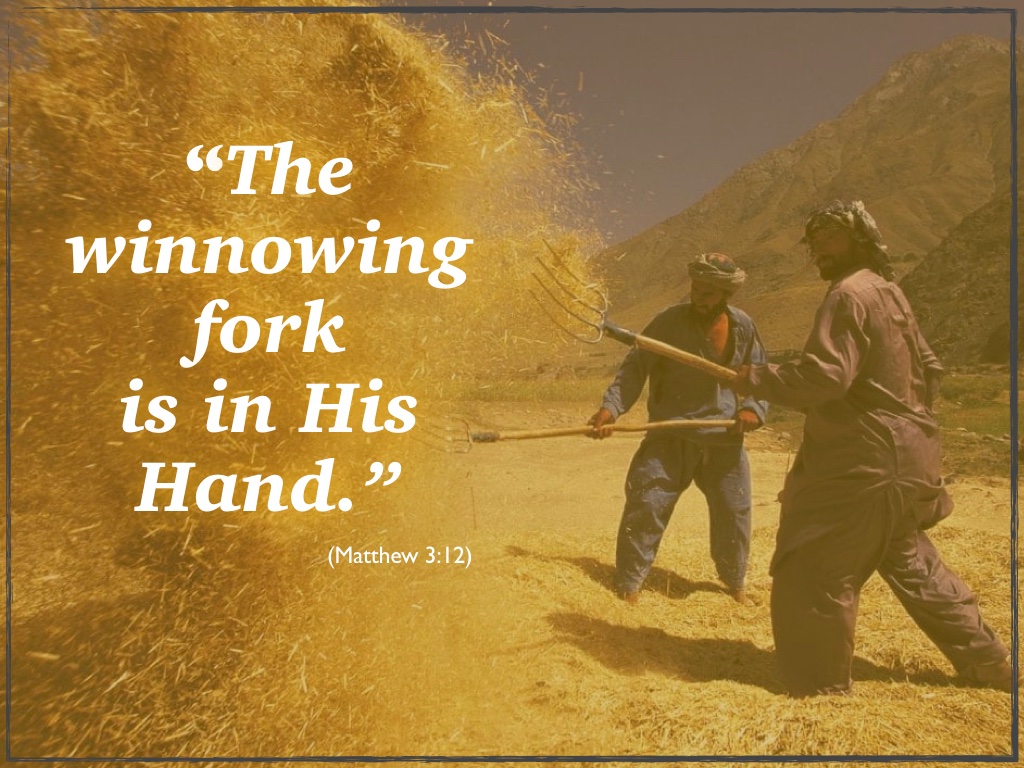 “His winnowing fan is in His hand, and He will thoroughly clean out His threshing floor, and gather His wheat into the barn; but He will burn up the chaff with unquenchable fire.”