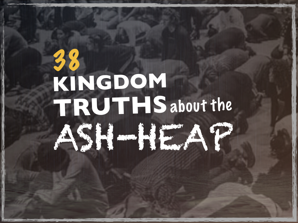 21. Ash-heaps are “attractional”… It’s where Bildad, Eliphaz and Zophar were drawn to Job. It’s where the lost, the blind and the wounded find authentic, redemptive and reconciling answers to a deeply broken world. “Christ in us” witnesses well on our ash-heap. If we want truth, justice and reality – within ourselves AND our communities – we cannot excuse ourselves from the ash-heap the Lord has designed for us.