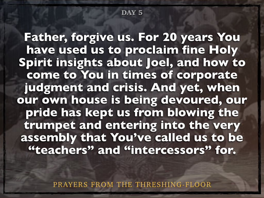 “I pray, Lord God of heaven, O great and awesome God, You who keep Your covenant and mercy with those who love You and observe Your commandments, please let Your ear be attentive and Your eyes open, that You may hear the prayer of Your servant which I pray before You now, day and night, for the #HouseOfPrayer Your servants, and confess the sins of #IHOPKC which we have sinned against You. Both my father’s house and I have sinned. We have acted very corruptly against You, and have not kept the commandments, the statutes, nor the ordinances which You commanded.” (Nehemiah 1:5-7)