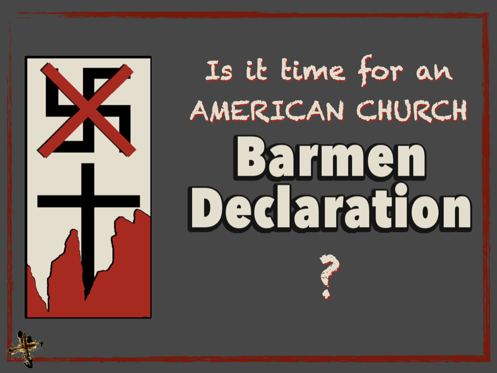 “The Barman Declaration” (chiefly written by the Swiss theologian, Karl Barth) contained six propositions, each rooted squarely in Scripture, stating its implications for the present day, and rejecting the false doctrine of Nationalism. The declaration asserted the church’s fidelity to Jesus Christ alone, Who stands as Lord in every sphere of life – and Who’s ways are to govern the manner of His Body’s witness within each of these spheres as well.