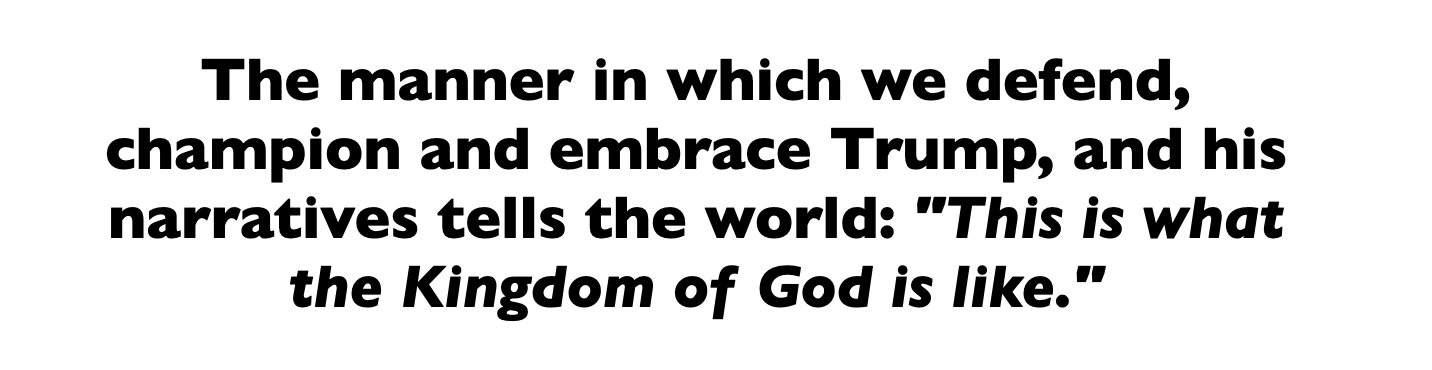 Our loud, confrontative, sponsorship of this man is the greatest subversion of the ideals of Jesus’ Kingdom in our generation, and one of the most consequential in the history of the Church in America.